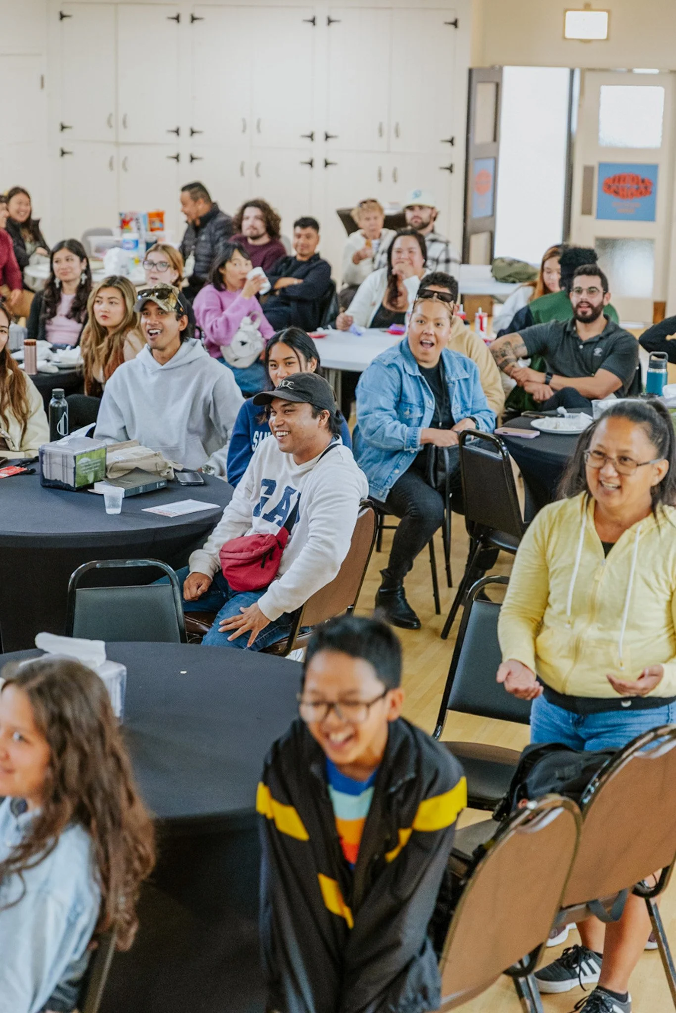 On Campus: signup during our weekend services by tapping your phone on the seat back in front of you